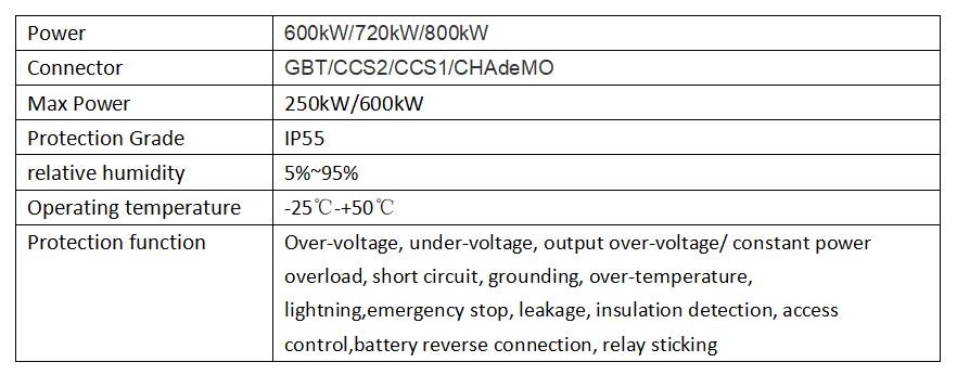 The 600kW-800kW can be configured with 10-12 charging terminals connectors, which can meet the maximum charging needs of 12 vehicles at the same time.