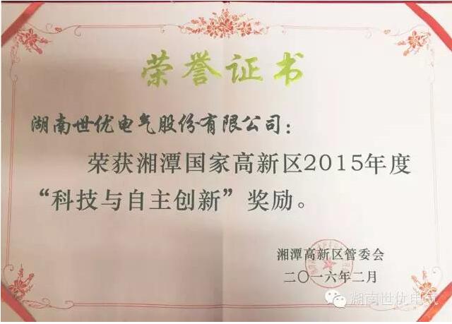 Award winning record of Shiyou Electric High tech Zone